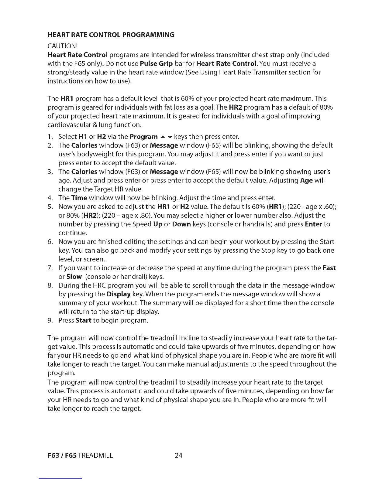 with the F65 only). Do not use Pulse Grip bar for Heart Rate Control. You must receive a