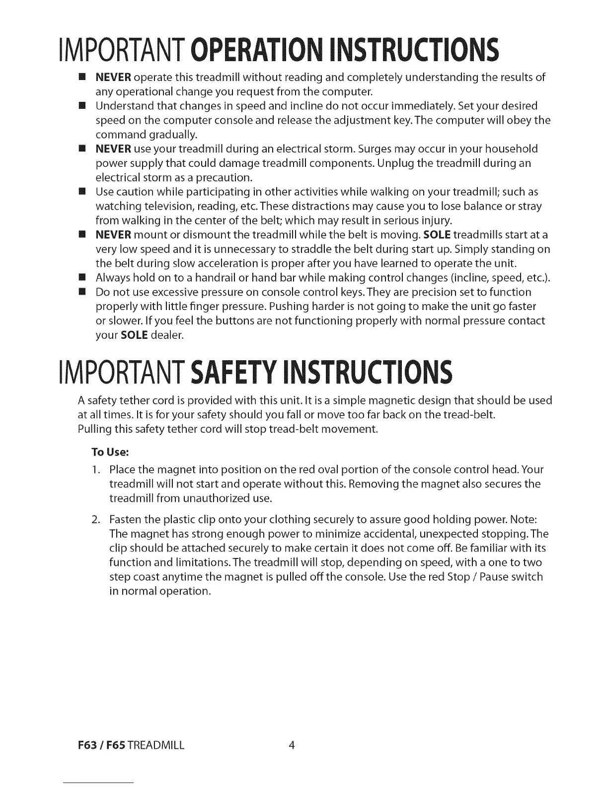 II NEVER mount or dismount the treadmill while the belt is moving. SOLE treadmills start at a