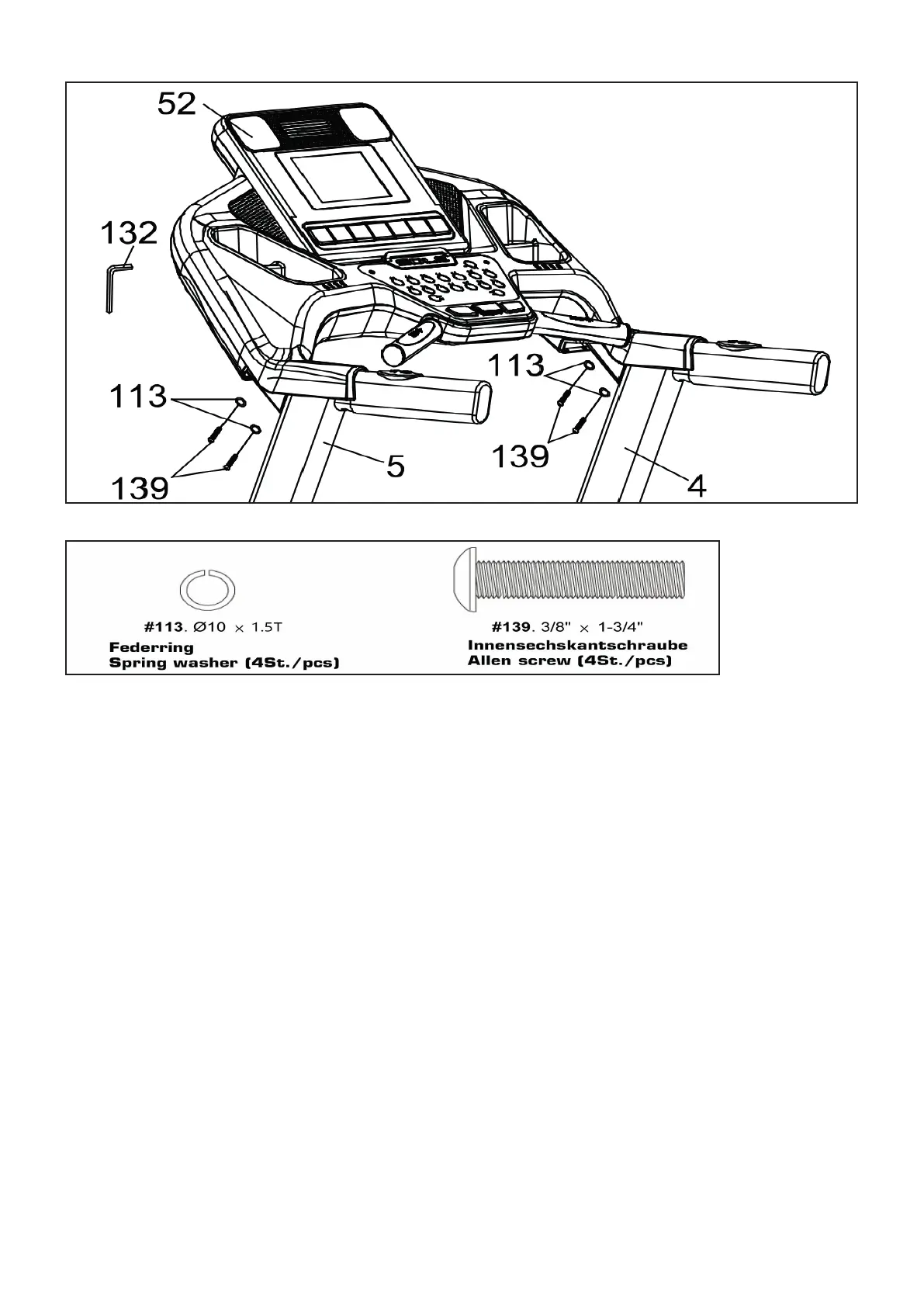 Attach the Console Assembly (52) onto the Upright Tubes (4 & 5)