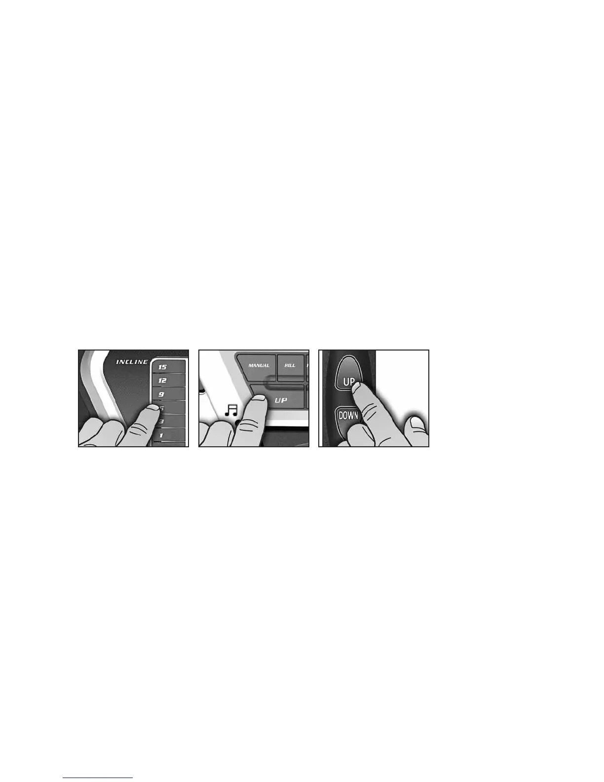 Press and hold the Up/Down keys (console or handgrip) to achieve desired level of ef-