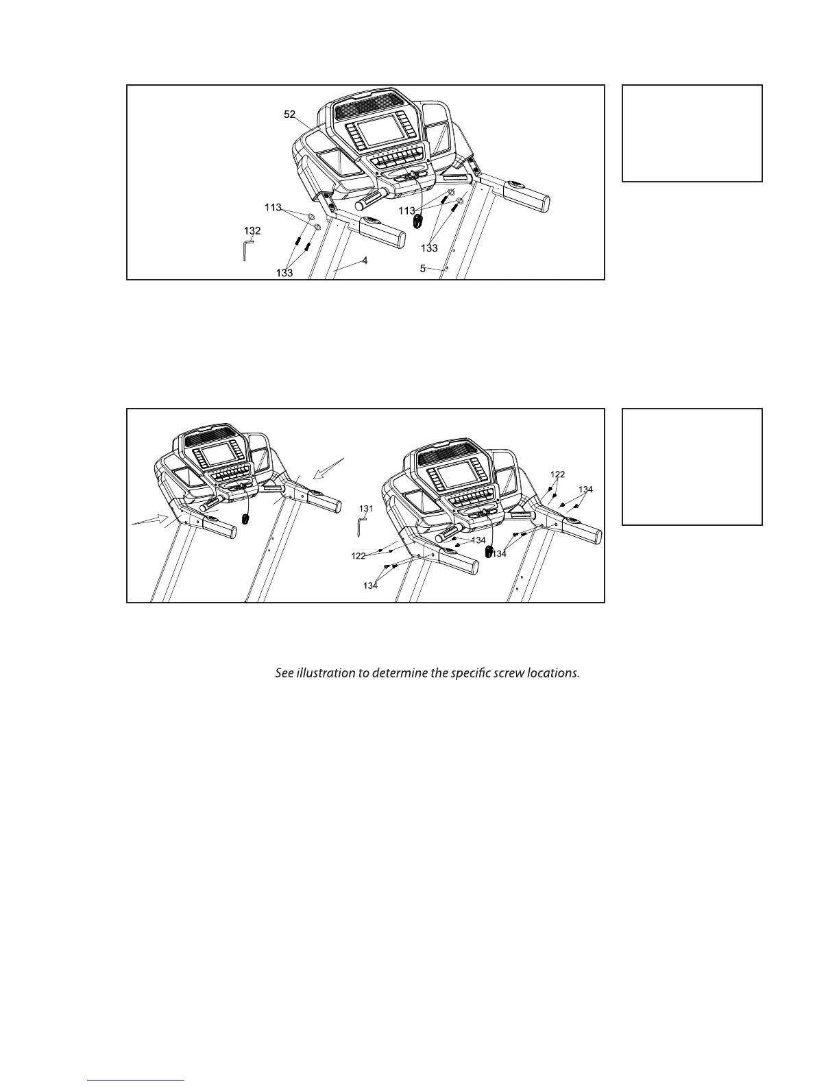 1. Attach the Console Assembly (52) onto the Upright Tubes (4 & 5) and