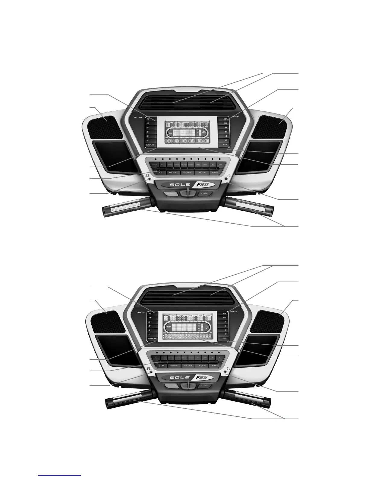 SOLE F83 - Treadmill Operation; Control Panel Overview; F80 Console Details; F83;85 Console Details