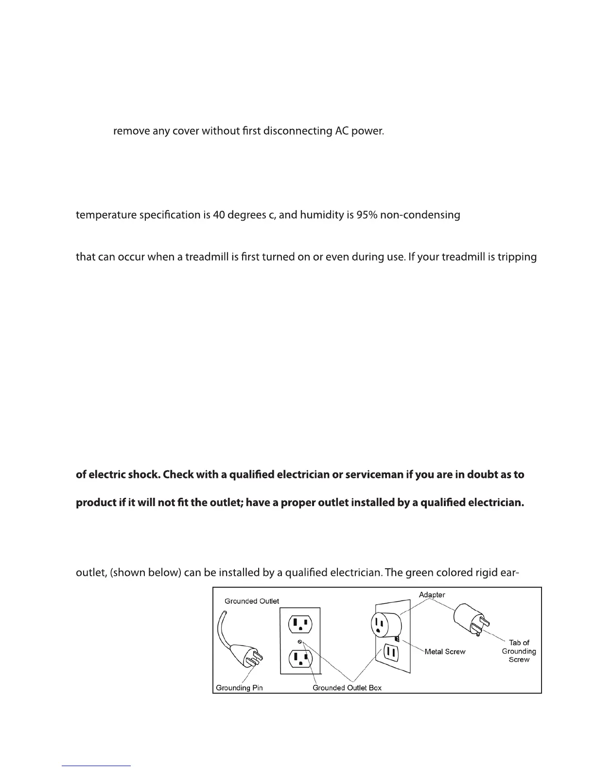 NEVER use a ground fault circuit interrupt (GFCI) wall outlet with this treadmill. As with any ap-