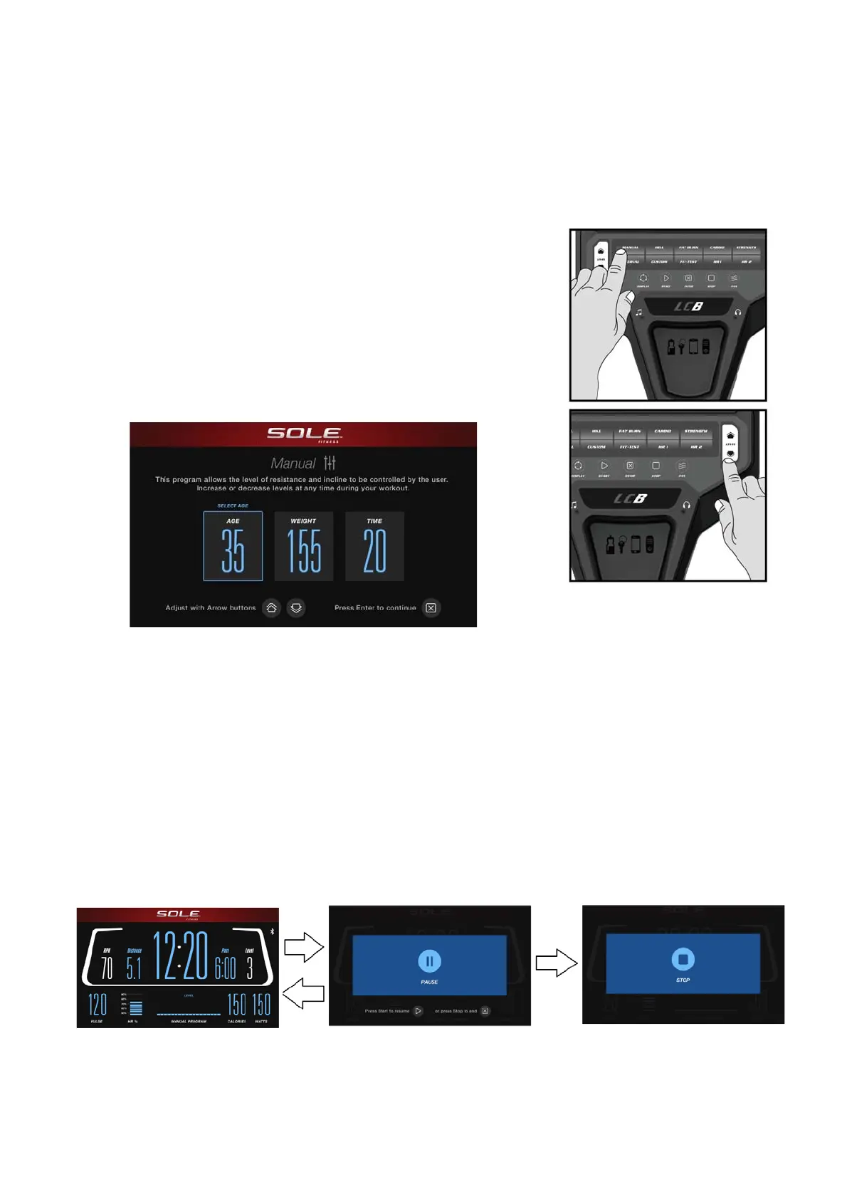8. During your workout, pressing the STOP key will pause the program. The bottom left of
