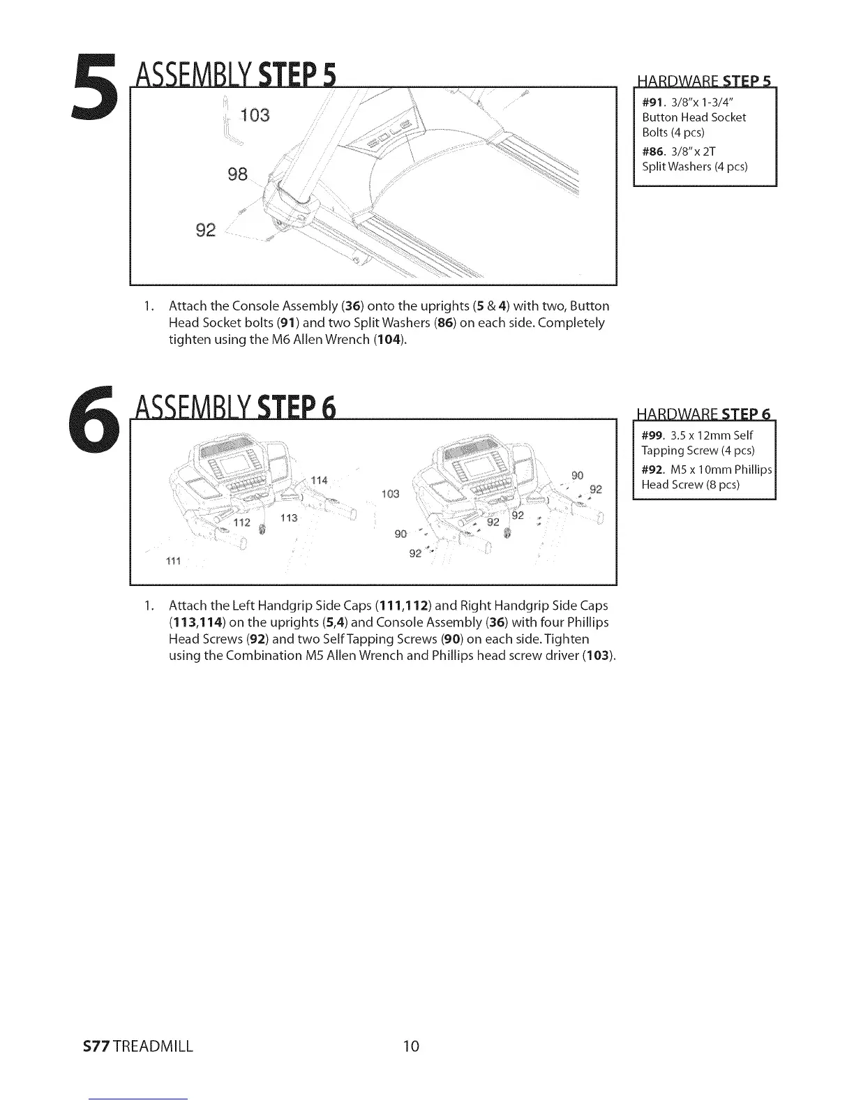 (113,114) on the uprights (5,4) and Console Assembly (36) with four Phillips