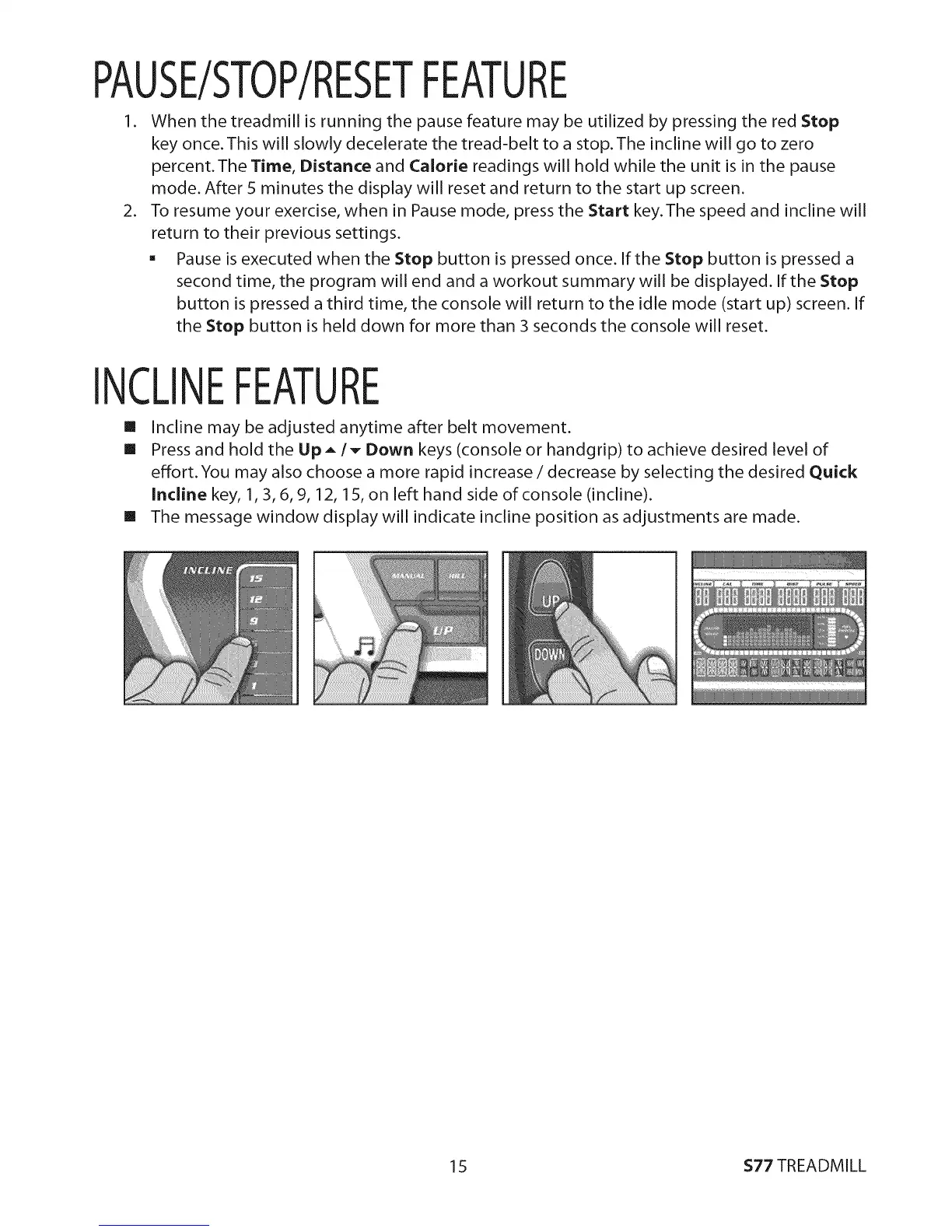 percent.The Time, Distance and Calorie readings will hold while the unit is in the pause