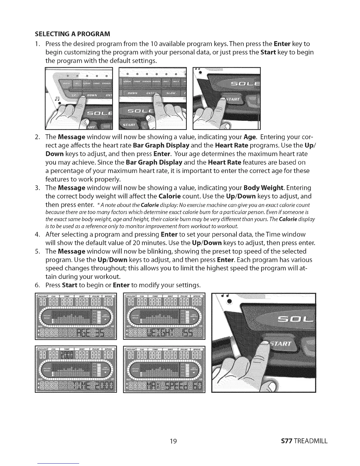 then press enter. * A note about the Calorie display: No exercise machine can give you an exact calorie count