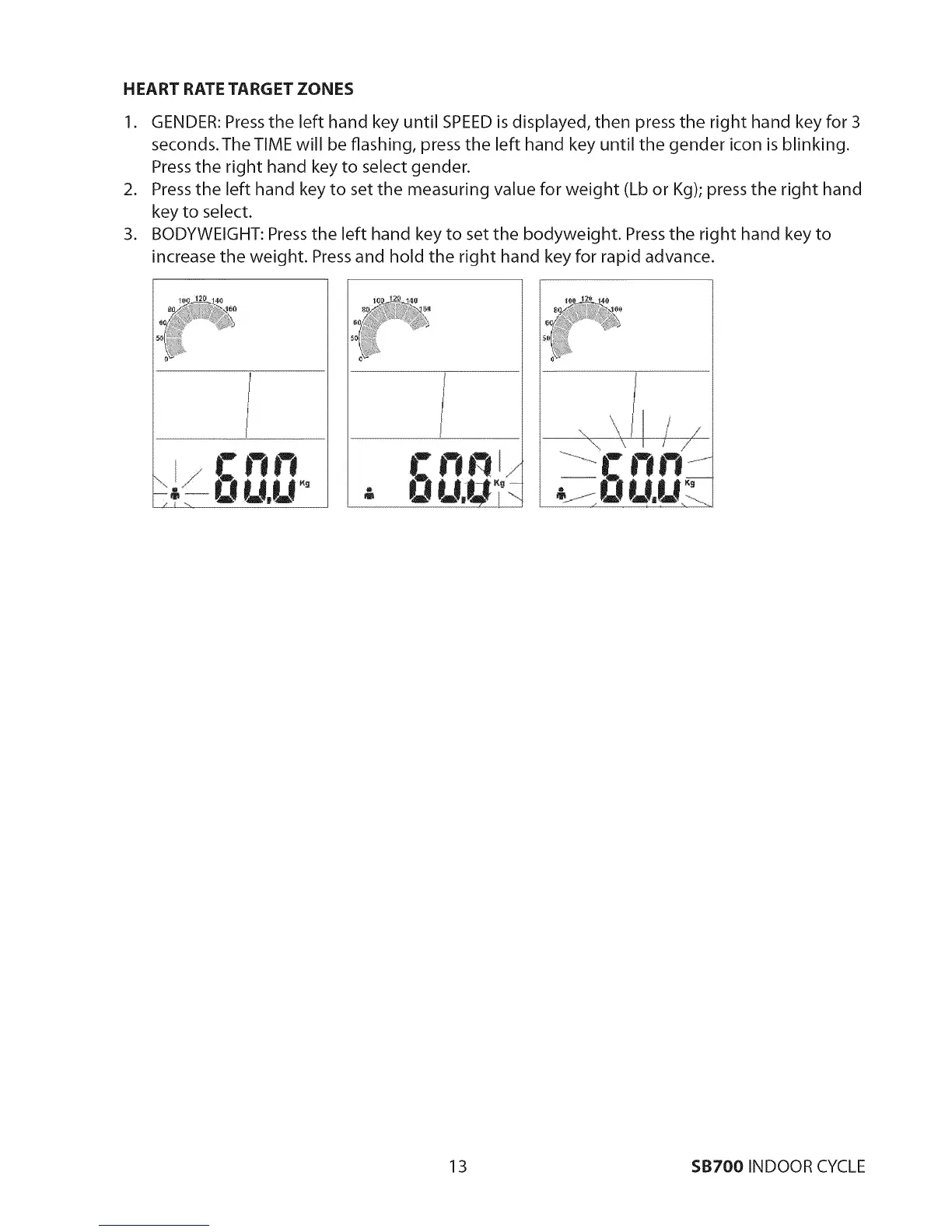 3. BODYWEIGHT: Press the left hand key to set the bodyweight. Press the right hand key to