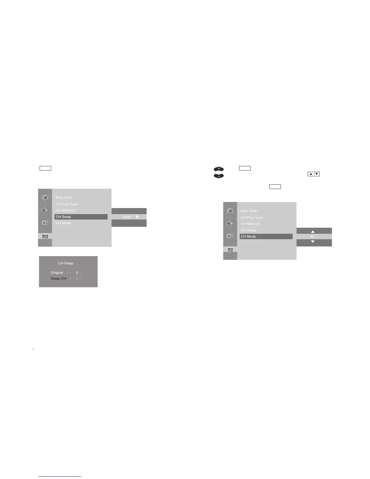 - Press button on the remote control and move to <CH Swap> menu.