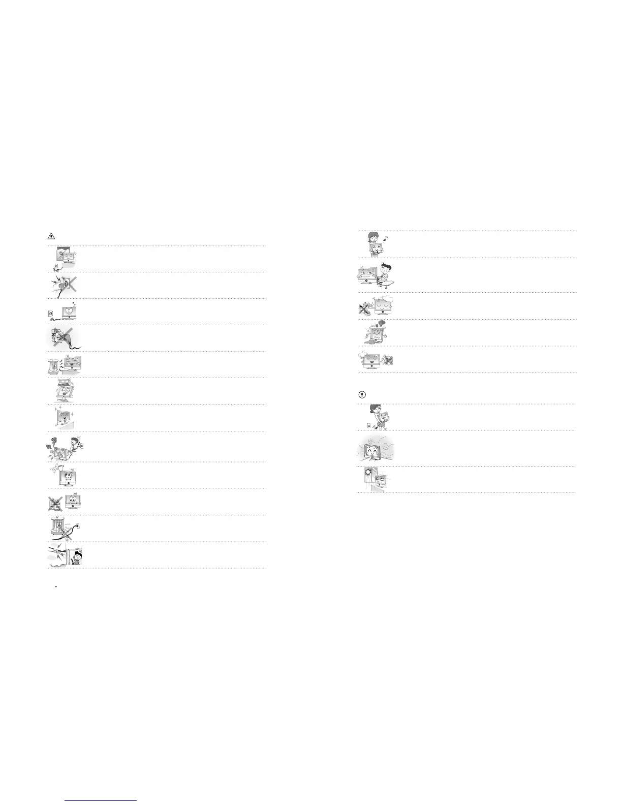 Damaged power cord, plug or unfitted outlet may be very dangerous.