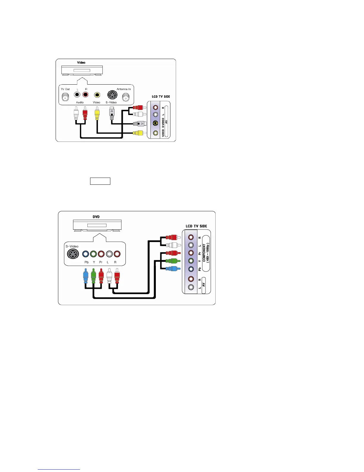 1. Connect component cable to component ports of TV and DVD player, VCR, Set-Top box or camcorder.