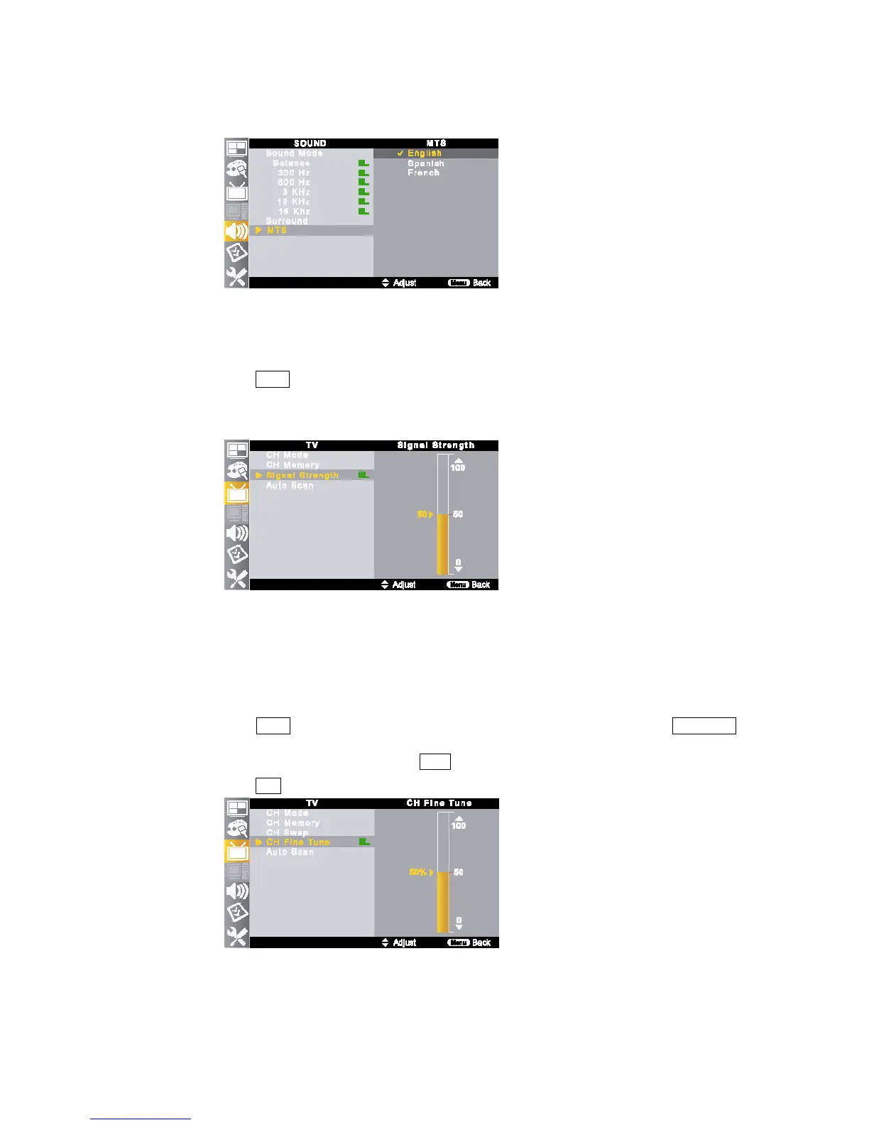 If a searched channel is unclear or sounds abnormally, use <CH Fine Tune> function to adjust it.