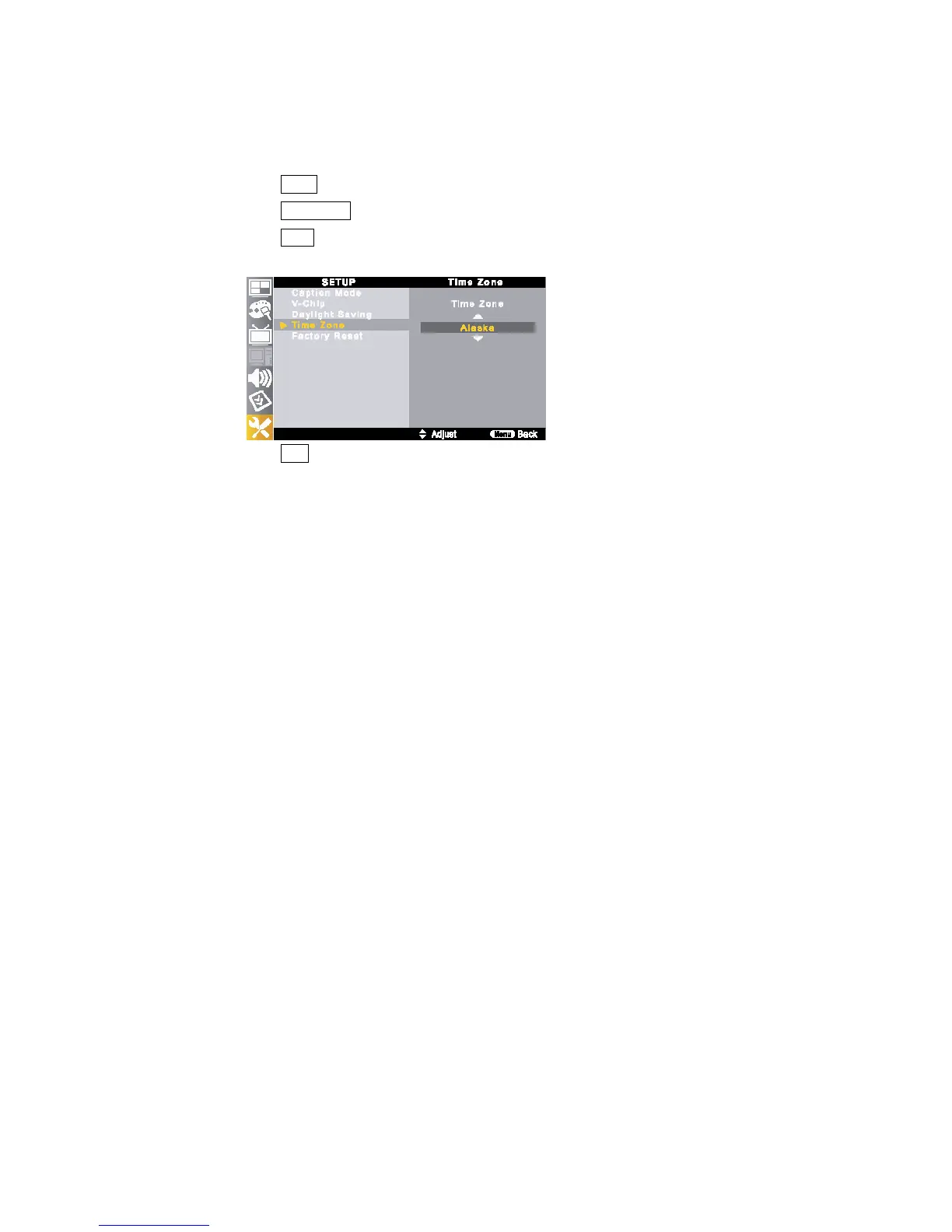 Press ///◀▶ buttons to move <SETUP – Time Zone>.