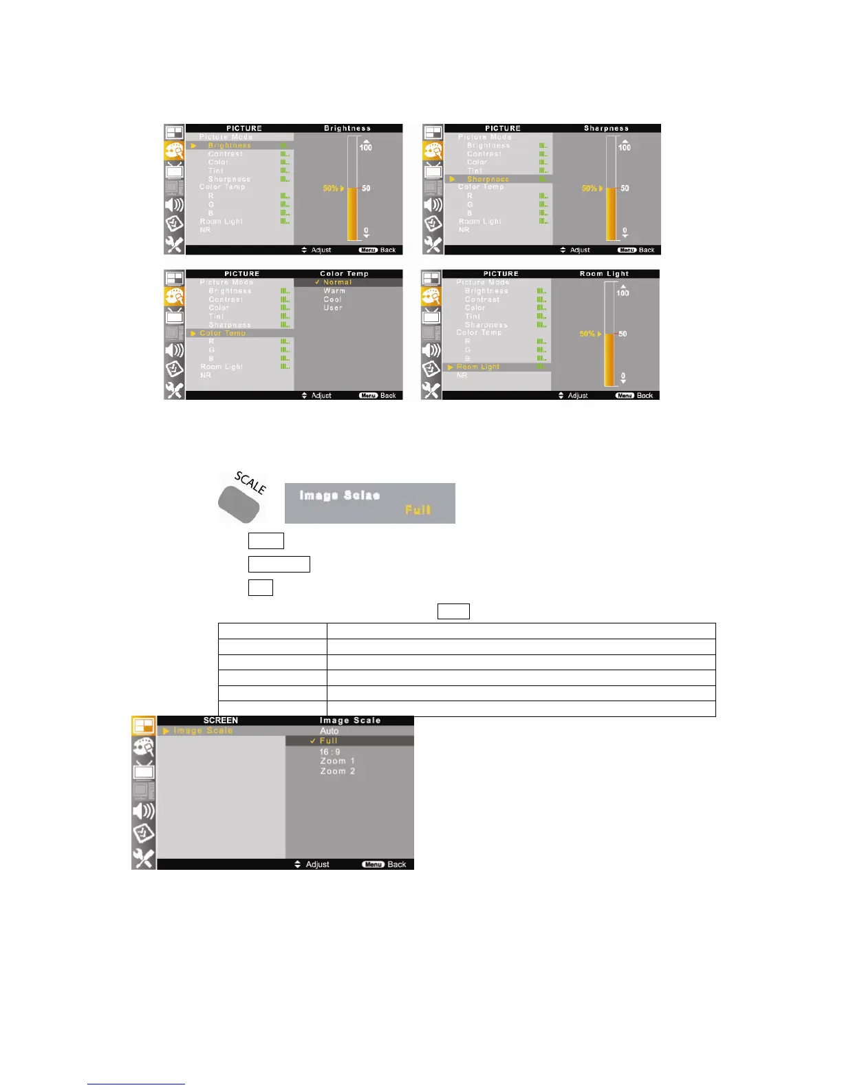 ② Press ▲/▼//◀▶ buttons to move <SCREEN – Image Scale>.