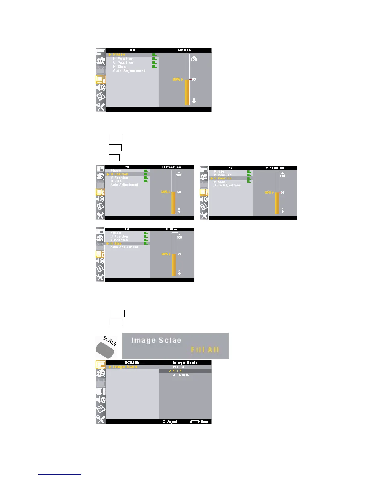 ① Press MENU button on the remote control and move to <PC – H Position> or <PC – V Position>.