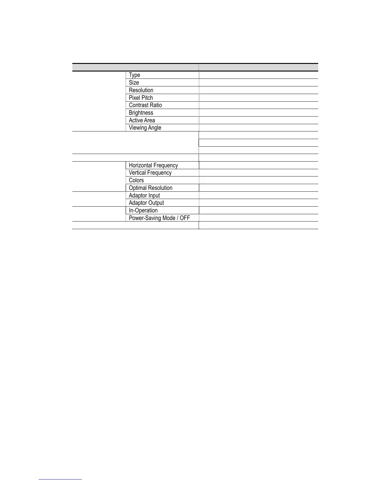 PC Monitor Horizontal Frequency 30 ~ 61KHz