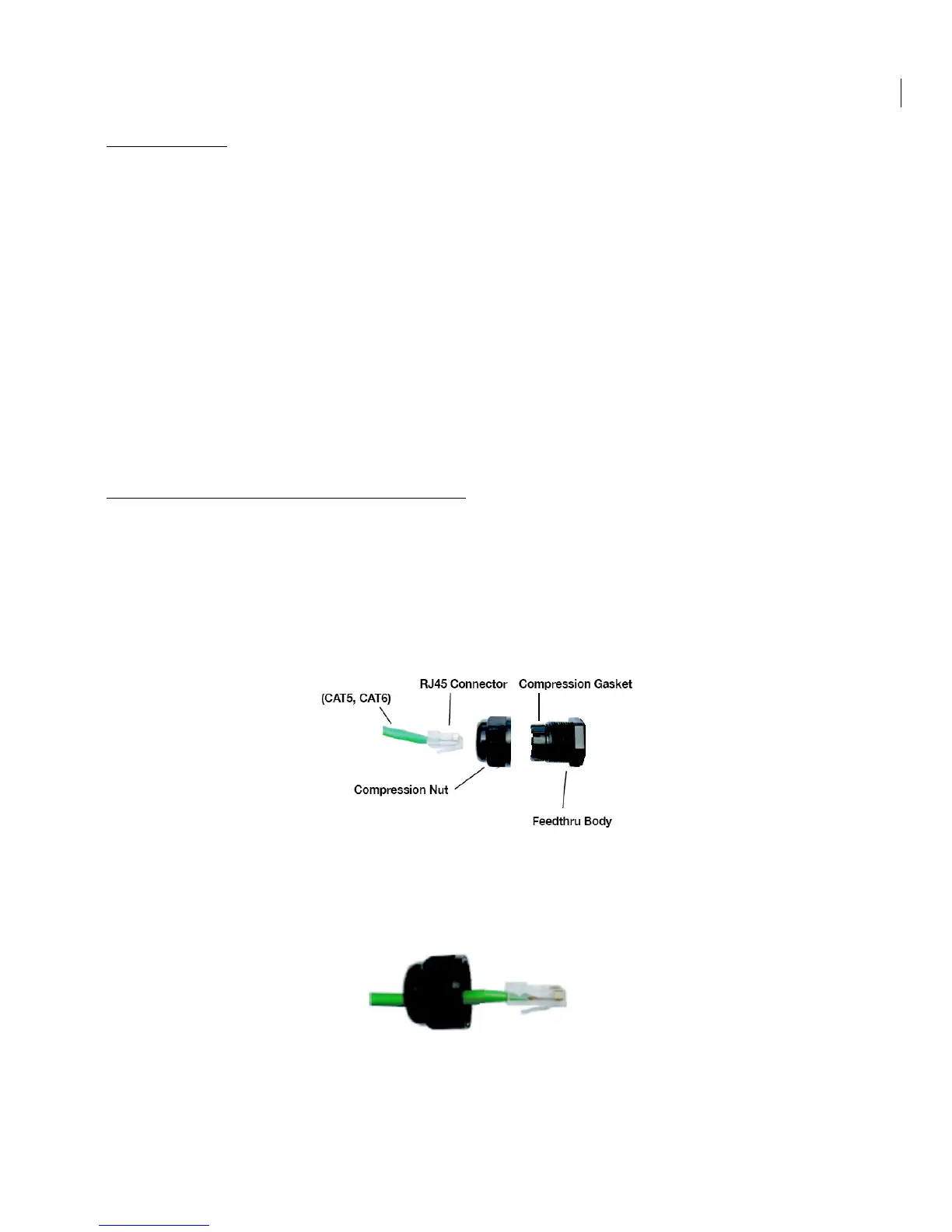 1. Remove the Compression Nut and slip it over the Ethernet CAT5 cable as shown below.
