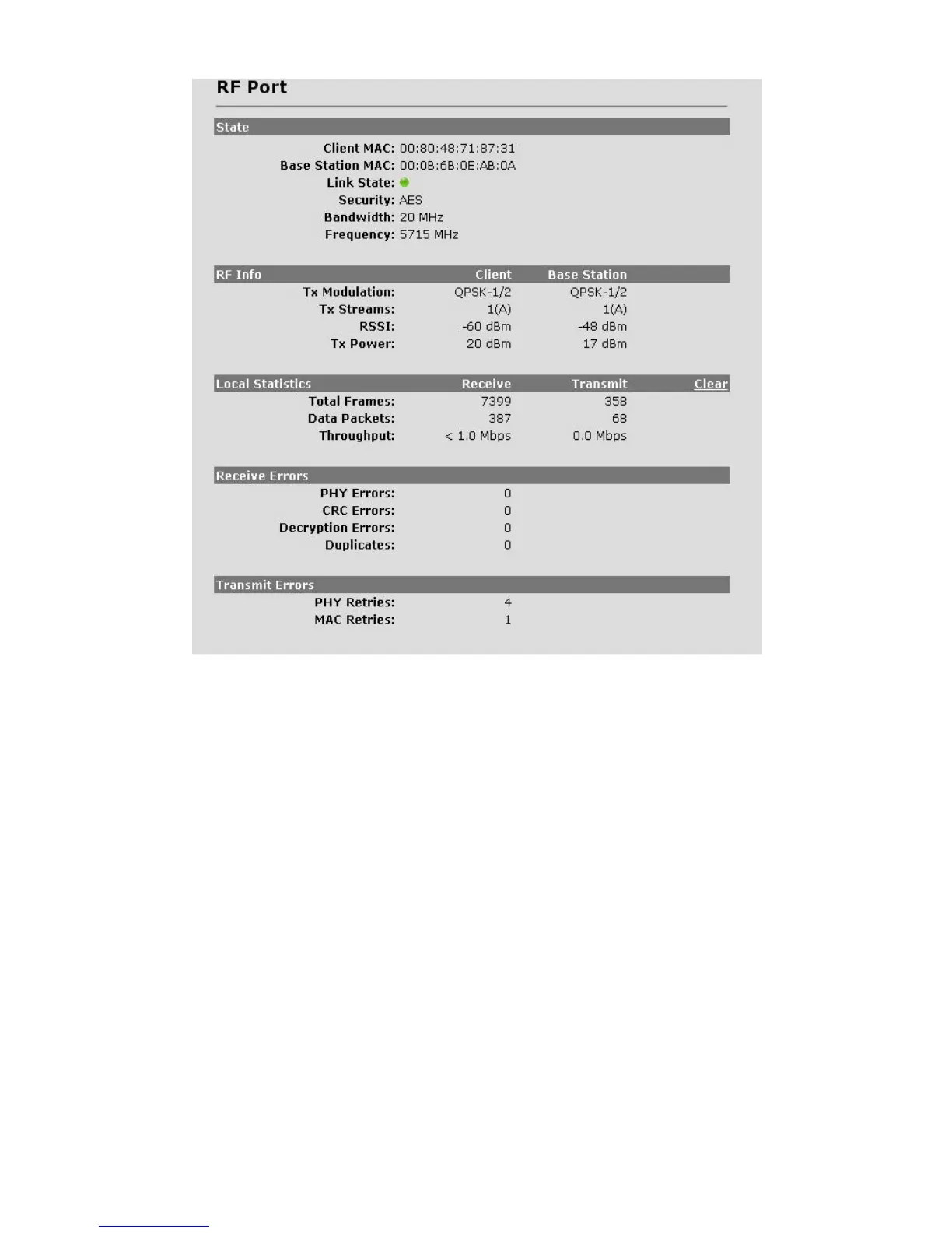Solectek skyway - Tip:; B. Main Status Screen - Client Unit