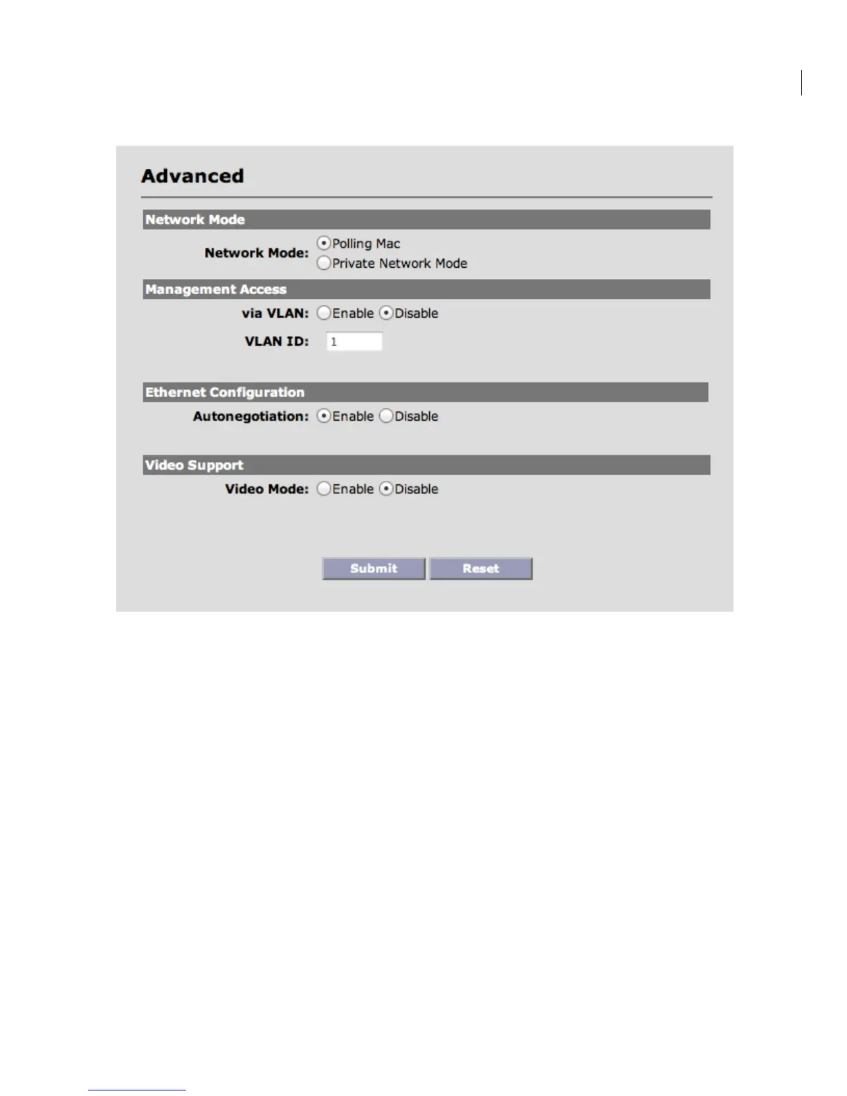 Enable/Disable. If access to the Web GUI will be from a PC within a VLAN, then this feature