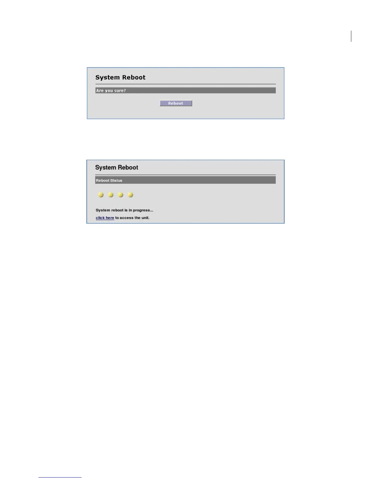 Click on the Reboot button to reset/reboot. The reboot process will take approximately 60 seconds.