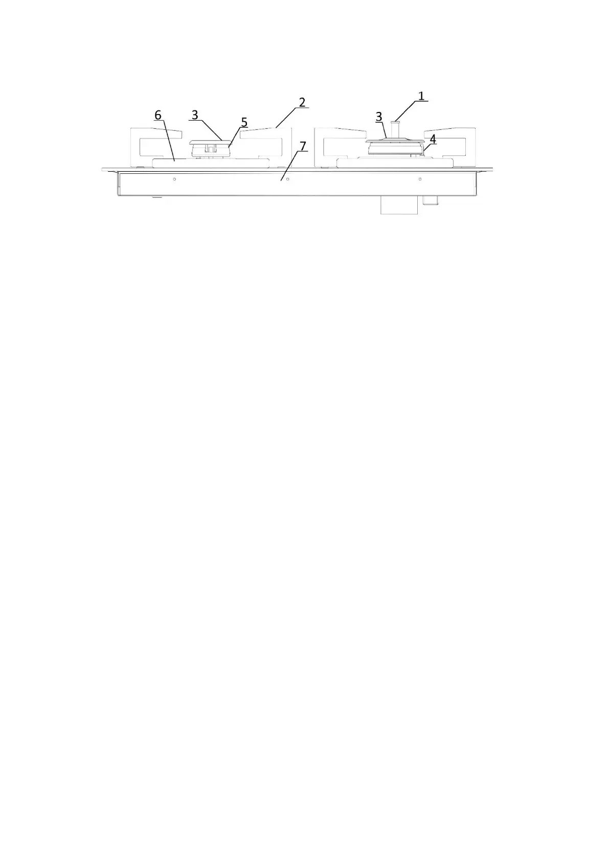 1 – thermal electrode (temperature sensor), 2 – cast iron grates for burners, 3 – burner caps,