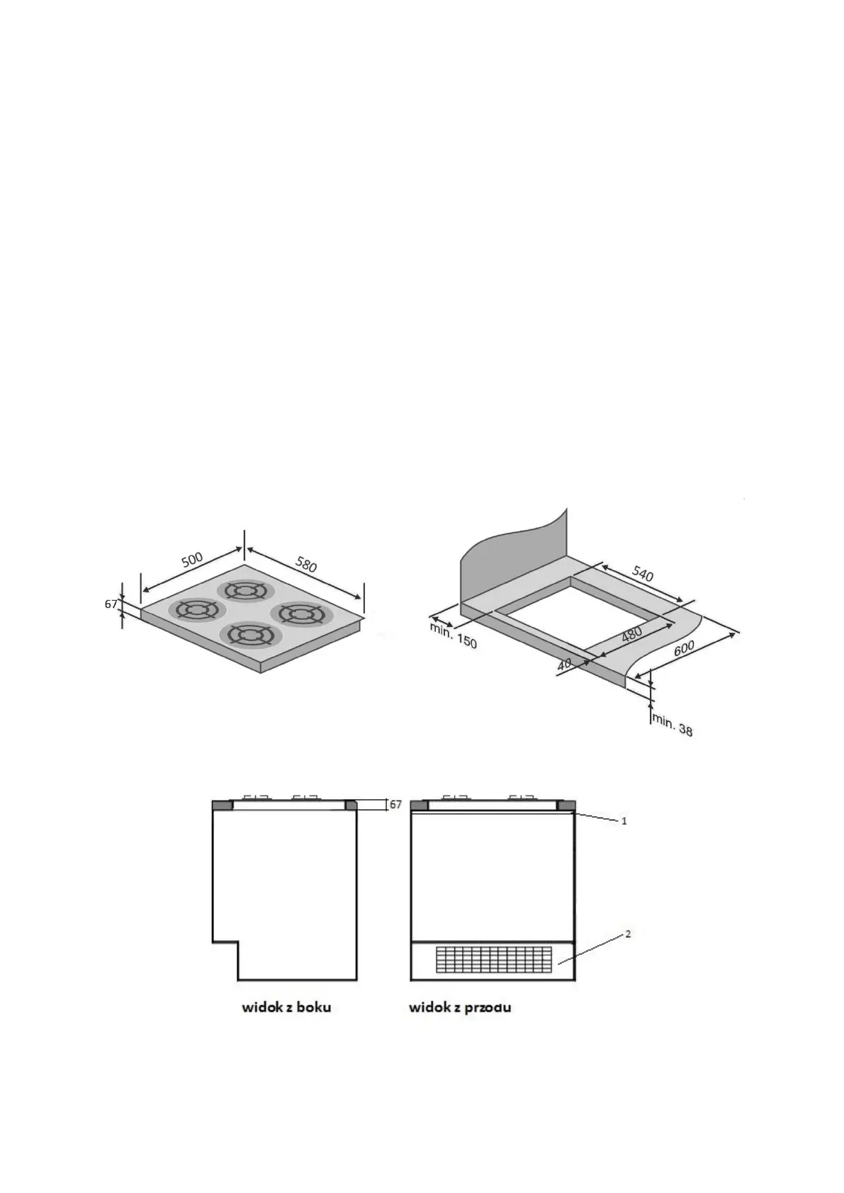 hob in the countertop of a kitchen cabinet or a composite countertop, prepare a 540 x 480