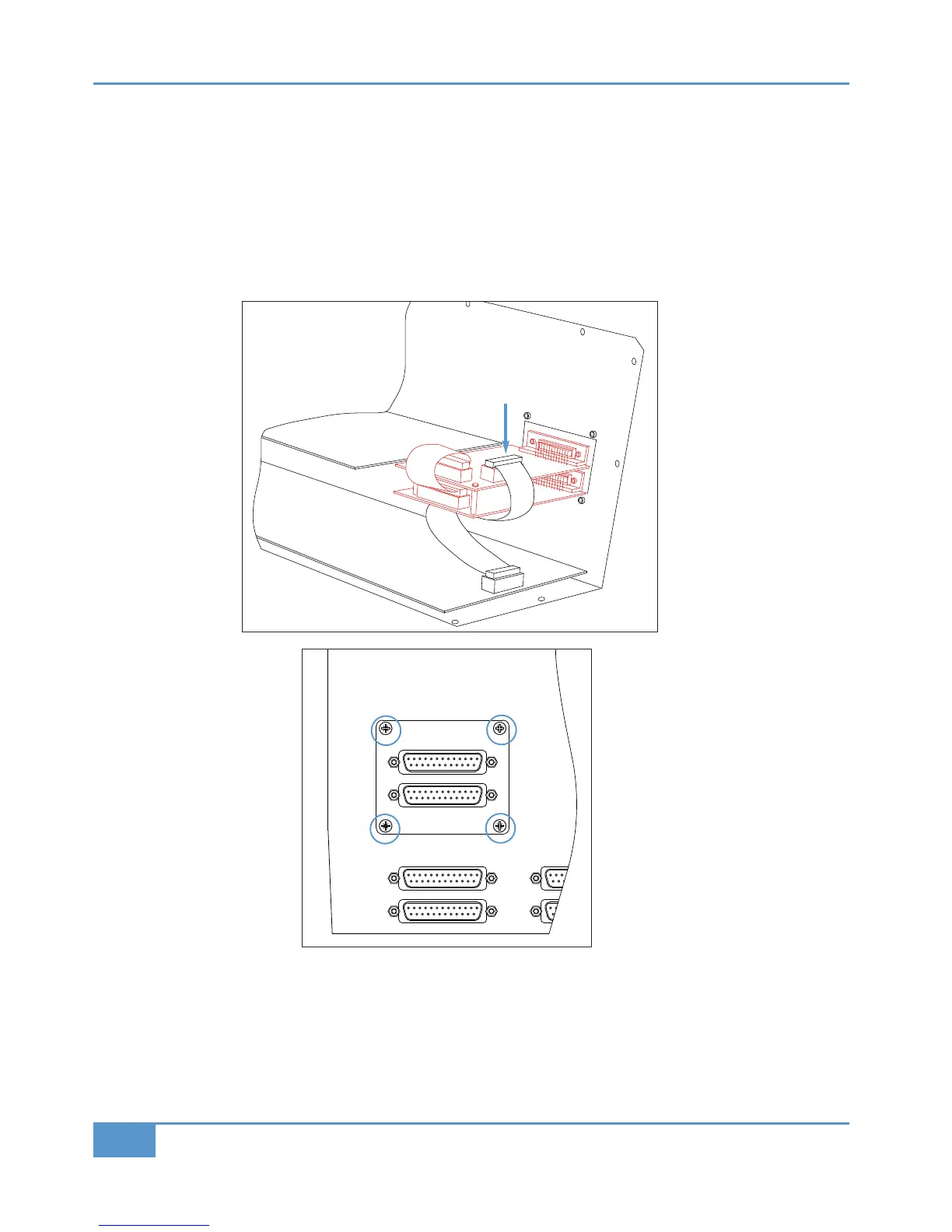 Remove the four M3 retaining screws from the rear panel as shown in the lower diagram.