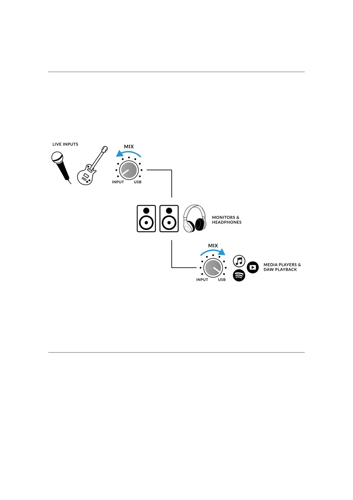 playback from your media player or DAW, check the position of the MIX