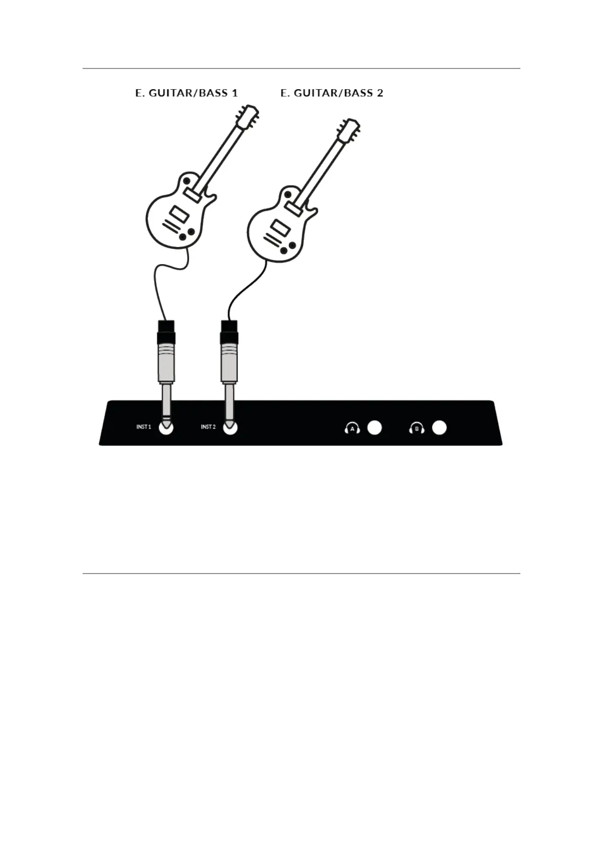 •Plug your guitar/bass into INST 1 or INST 2 on the lower front panel using