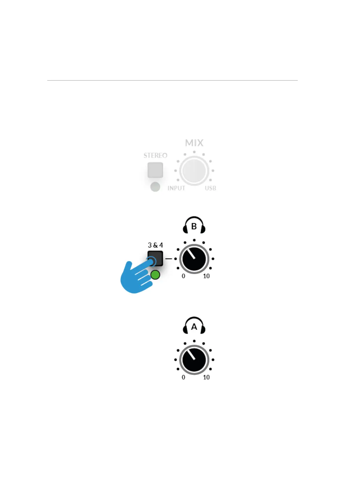 Engaging the 3&4 button changes the source for Headphones B from