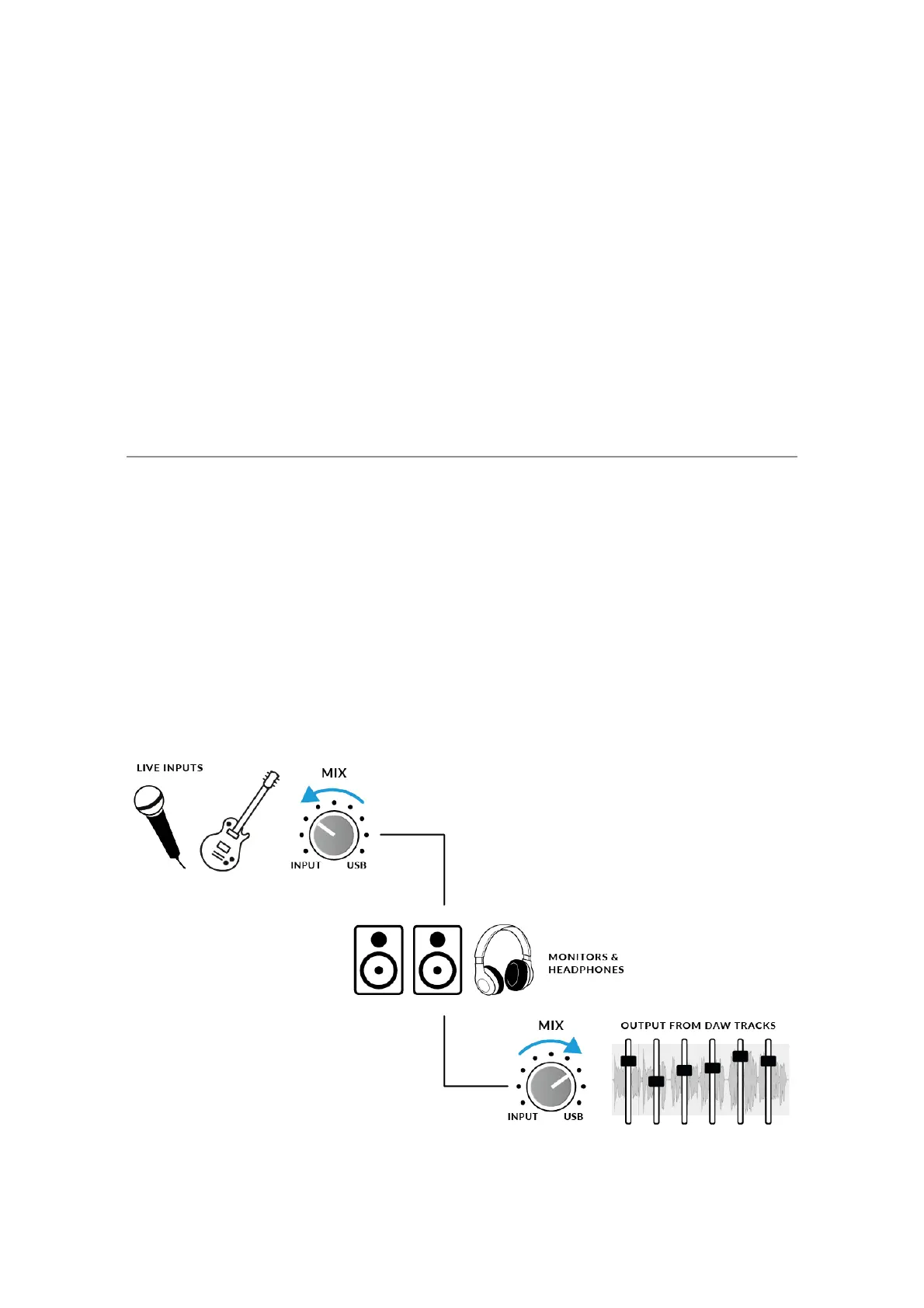 Use the MIX control to balance how much of your 'live' input you are hearing