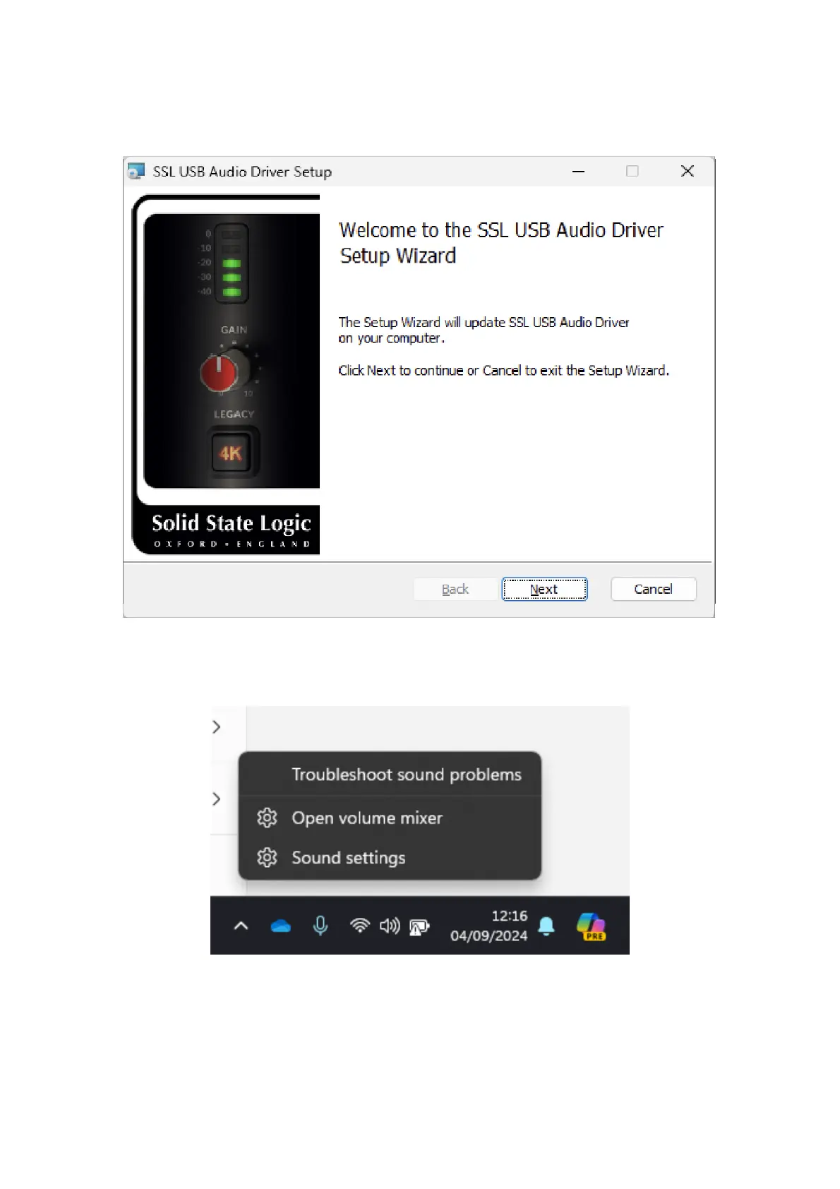 3. Go to ‘Control Panel’ then ‘Sound Settings’ and select ‘SSL 2+ MKII USB’