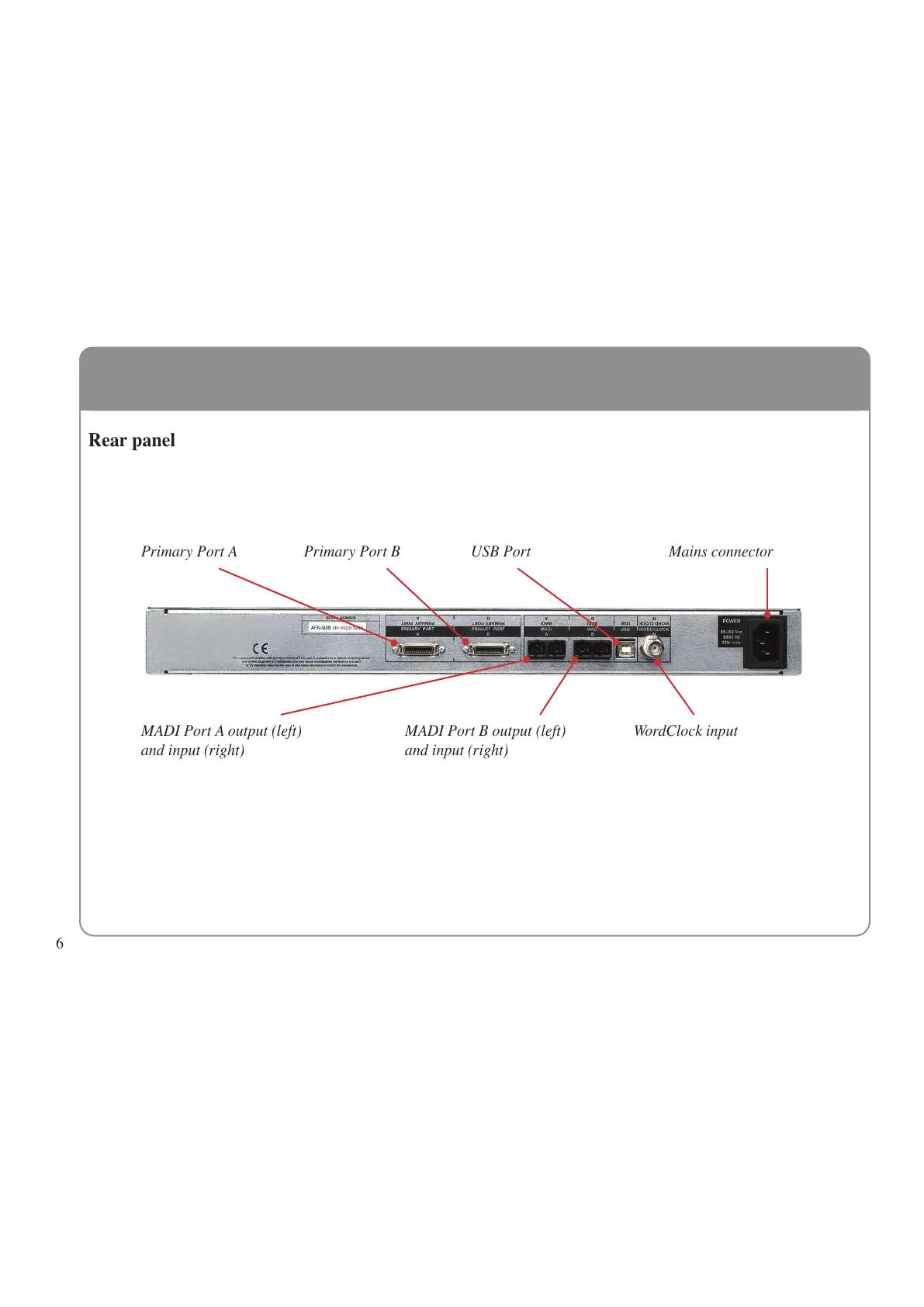 Primary Port A Primary Port B USB Port Mains connector