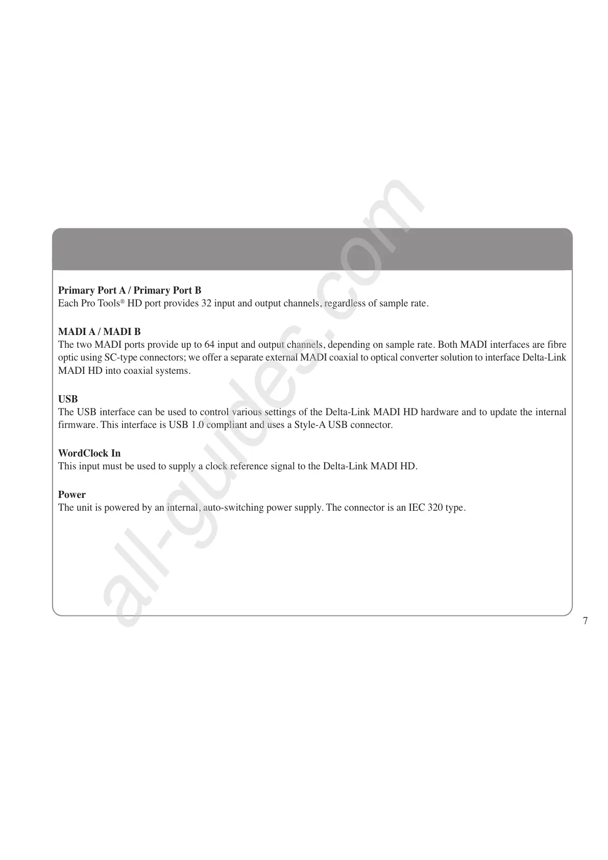 optic using SC-type connectors; we offer a separate external MADI coaxial to optical converter solution to interface Delta-Link