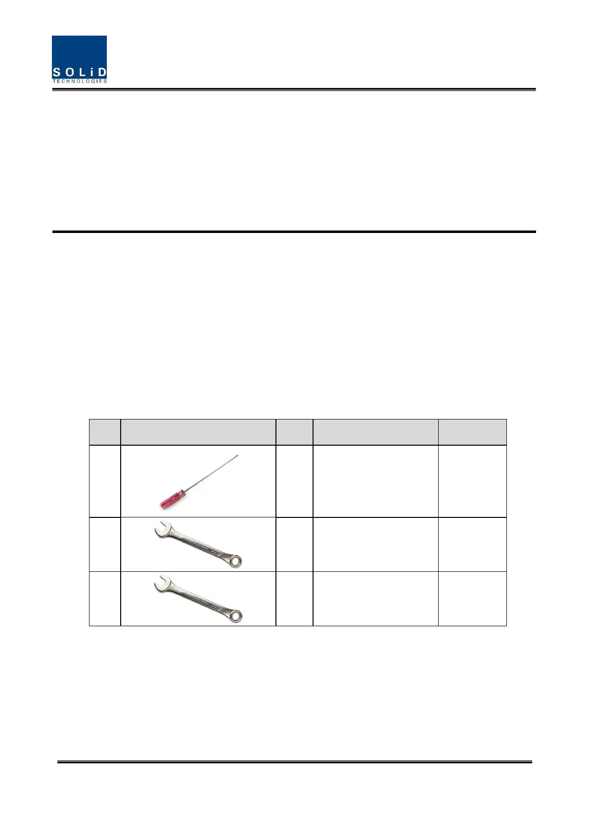 Tools needed for installation is table below