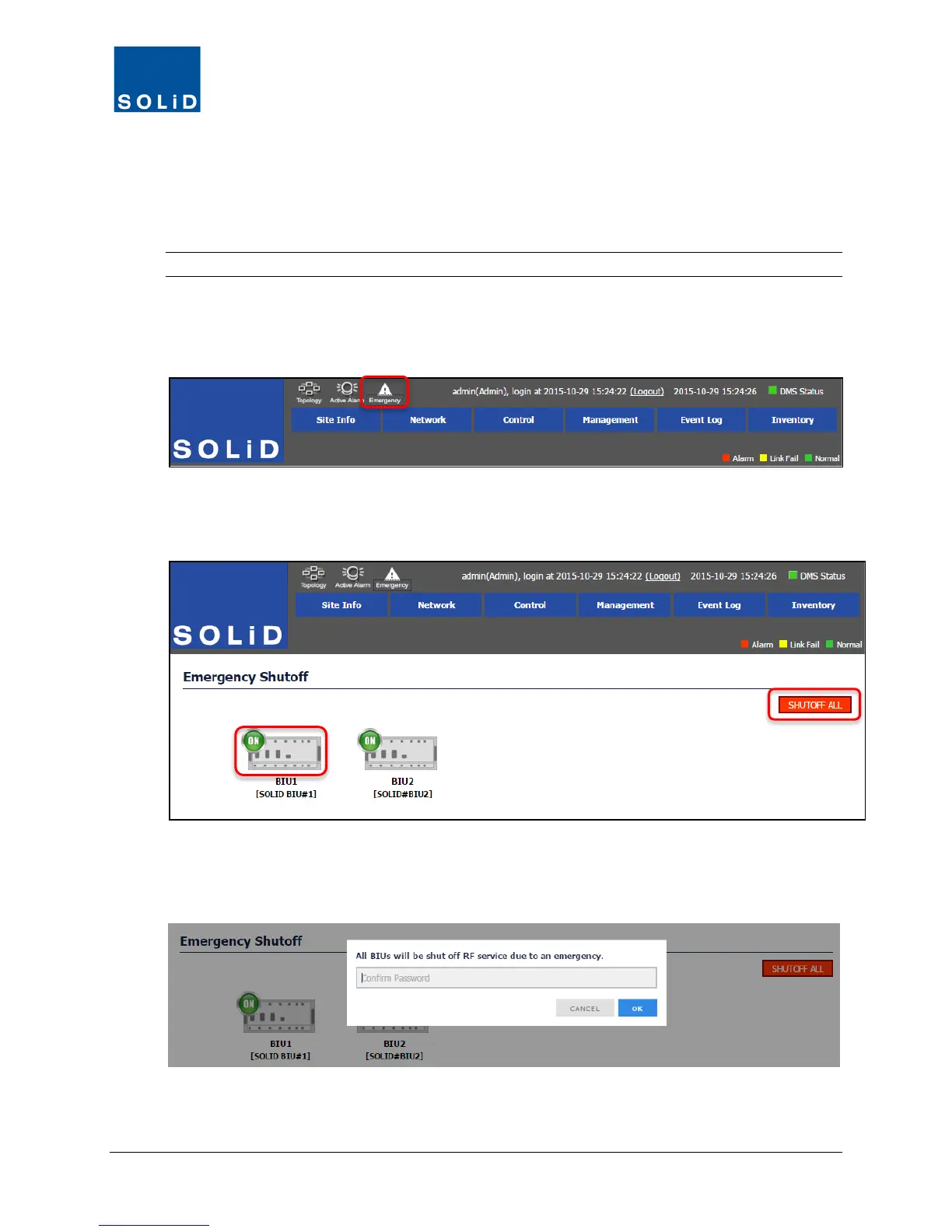 in the DMS-1200 main screen. For systems with multiple BIUs, the Administrator can turn off
