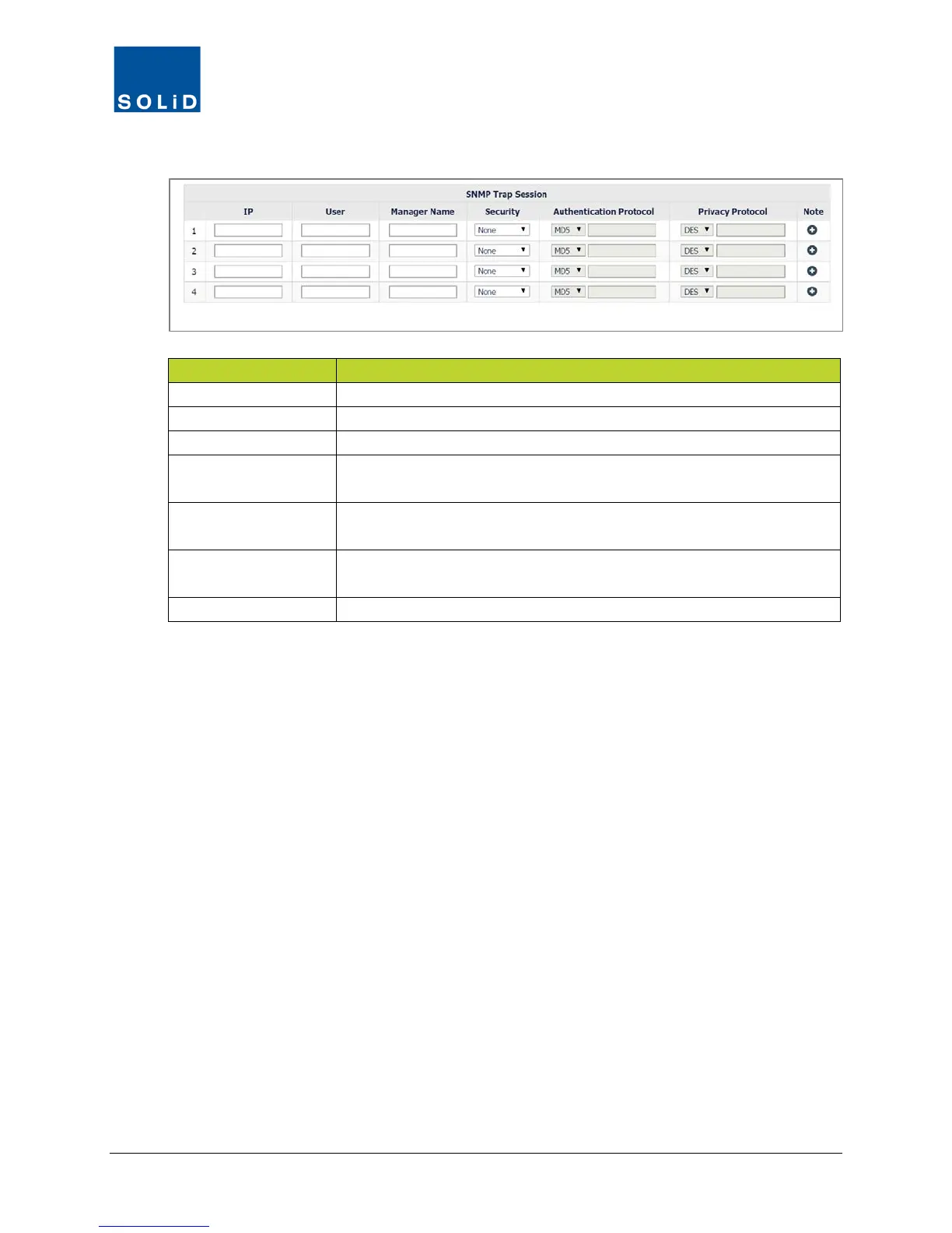 3. In the SNMP Trap Session section, edit the settings according to these guidelines.