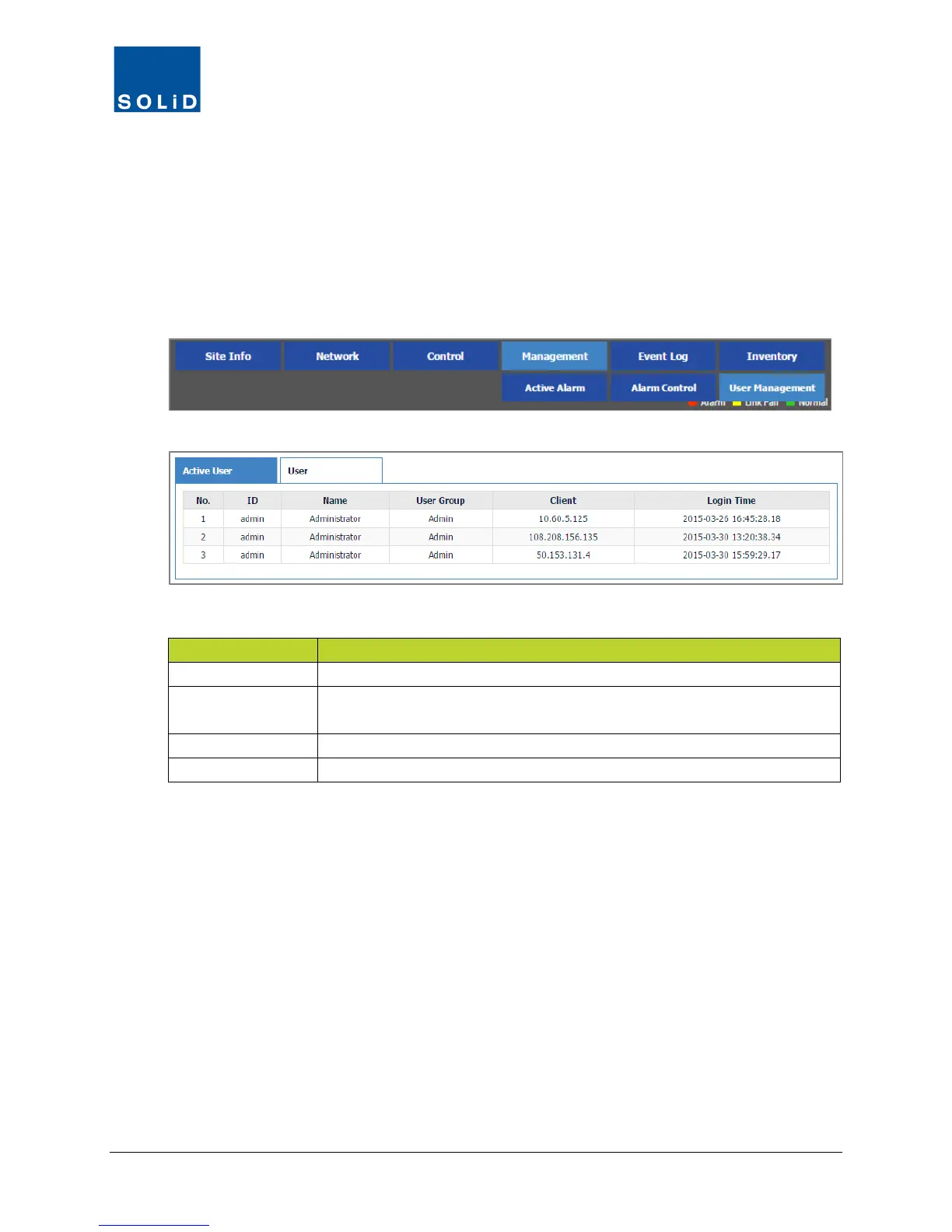 Table 5.3 – Active User List
