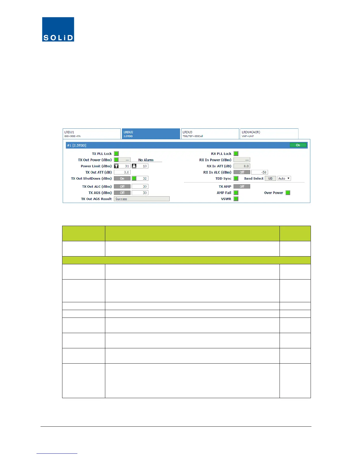 Table 7.12 – LRDU Control Screen Fields – TX Value