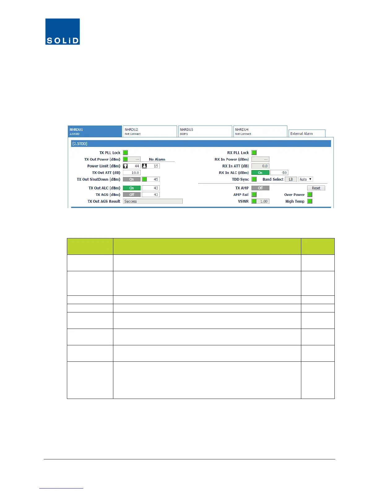 Table 7.26 – NHRDU Control Screen Fields – TX Values