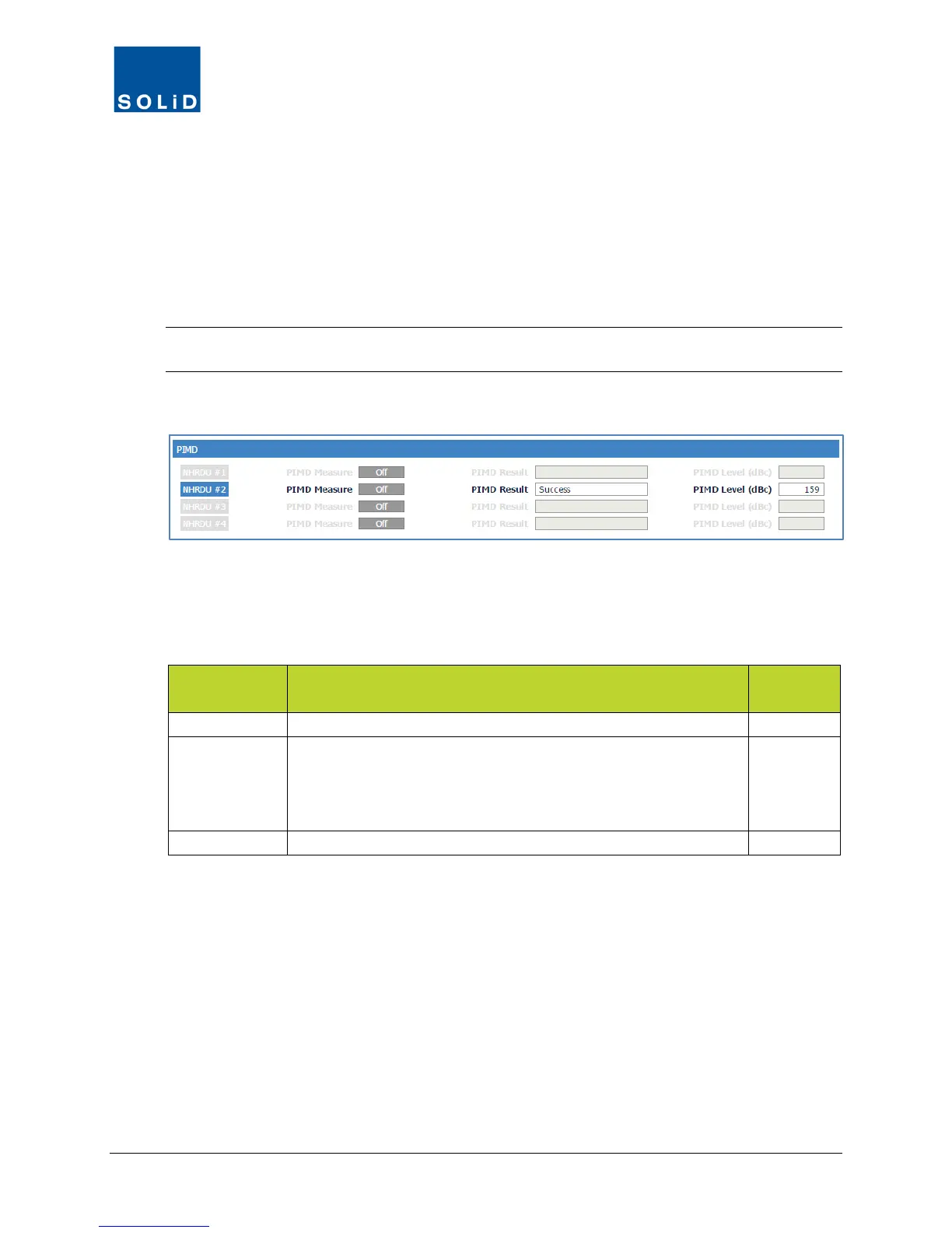 Table 7.28 – PIMD Measurement