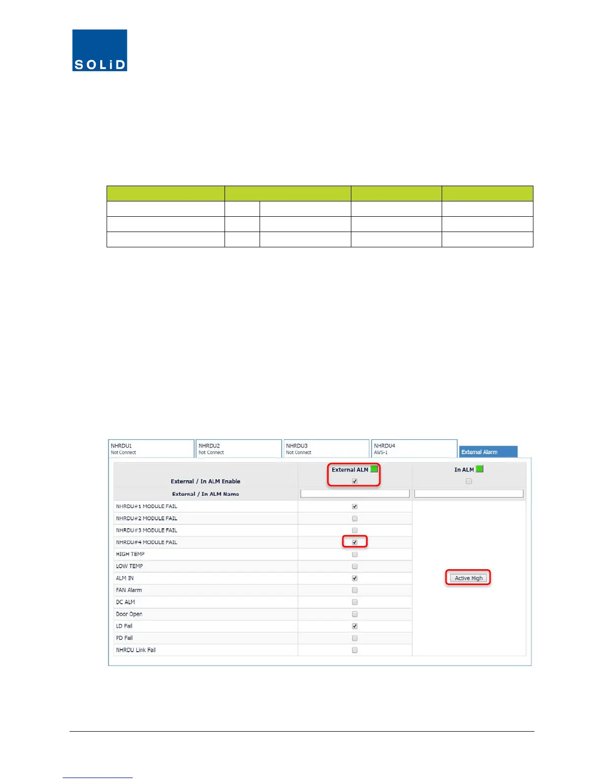 2. Check the External ALM and/or In ALM Enable box to activate.