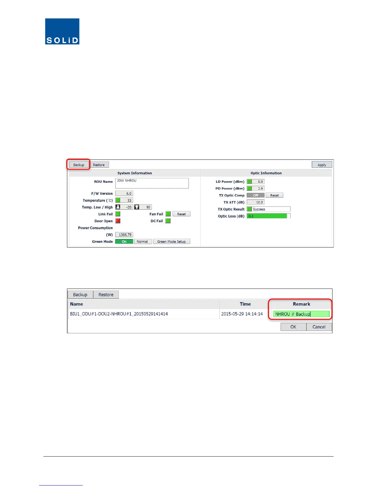 1. To make a backup of current DAS control settings, click Backup from the Device Control