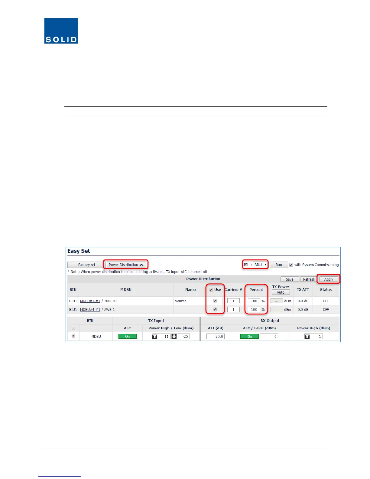 TIP: When power distribution function is activated, TX input ALC is turned off.