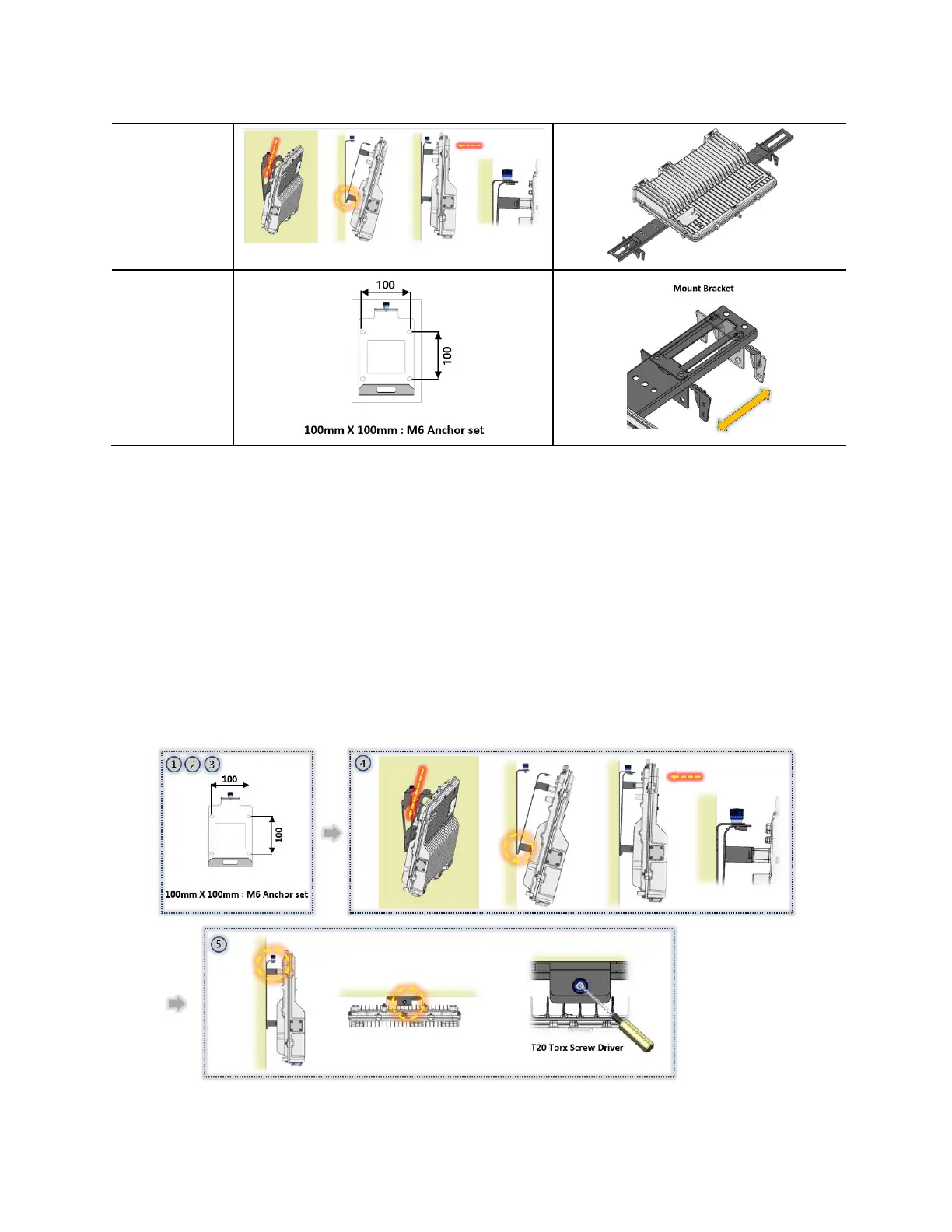 3. Secure the wall bracket to the wall or ceiling using the 4(four) M6 anchor sets.