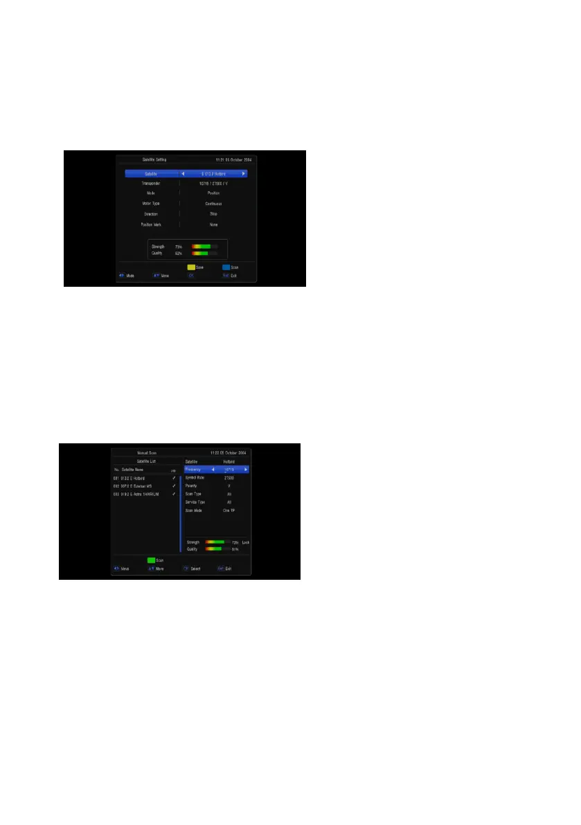 Transponder, Polarity, NIT, program ,Scan mode,scan select,Signal Quality Bar and etc. And press
