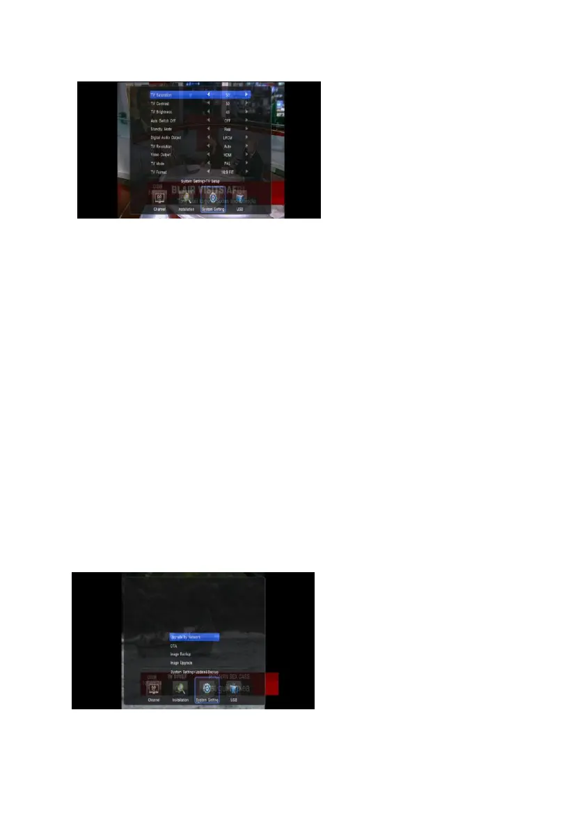 Video Output: To set video output mode RCA (CVBS)/SCART (CVBS)/SCART (RGB)/YCBCR