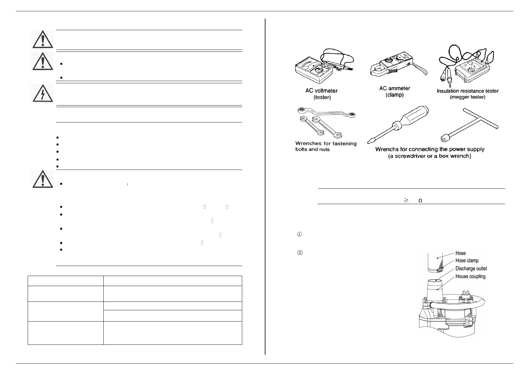 Listed below are tools and instruments that are needed to install the submersible pump for