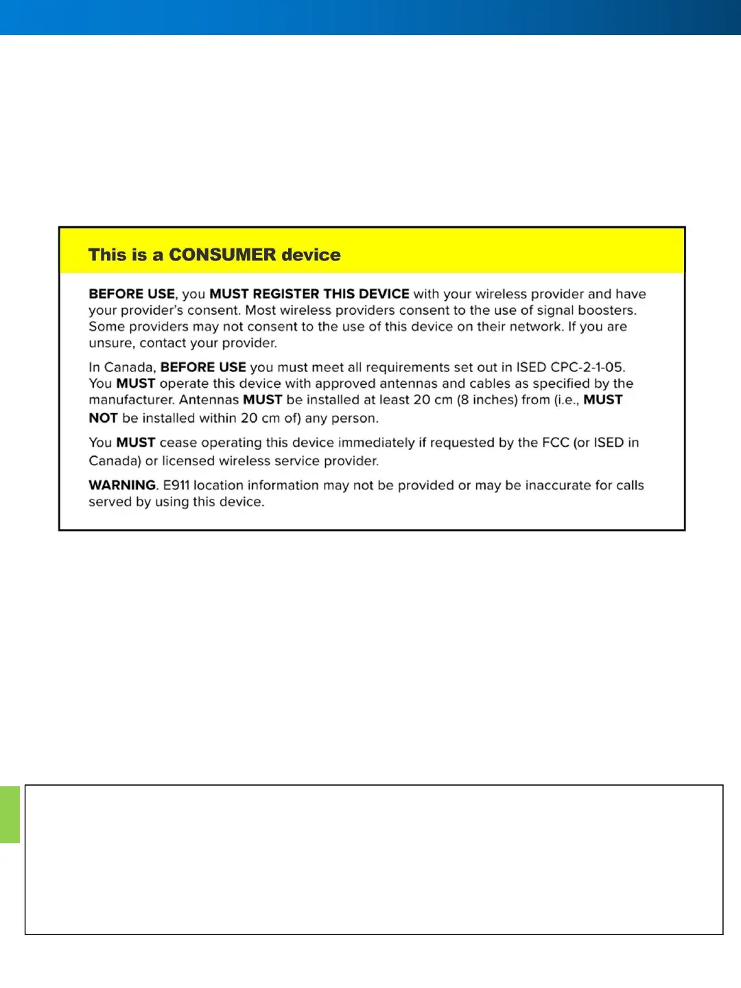 FOR MORE INFORMATION ON REGISTERING YOUR SIGNAL BOOSTER WITH YOUR WIRELESS PROVIDER,