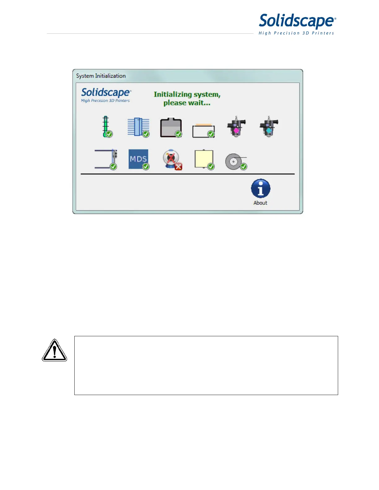 be displayed that disables all other operations during the twenty minute system warm up